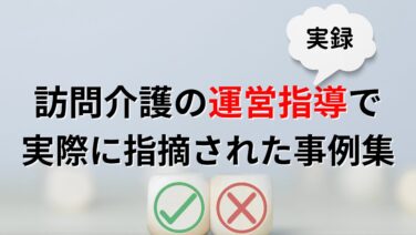 運営指導対策 【実録】訪問介護の運営指導で実際に指摘された事例集 訪問介護の運営指導で過去に実際に指摘された事例を一覧でまとめました。行政がチェックする具体的な不備ポイントを把握する参考にしてください。 2025.09.10 運営指導対策