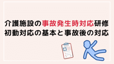 介護研修資料 【印刷OK】介護施設の事故発生時対応研修|初動対応の基本と事故後の対応 介護施設で事故が発生した際の初動対応を解説。利用者の安全確保、状態観察、報告・連絡・記録など事故後の対応をまとめた研修記事。印刷してそのまま研修資料として使えます。 2026.03.11 介護研修資料